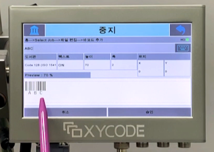 화면의 미리보기에서 문자 / 코드 위치와 크기를 점검합니다.